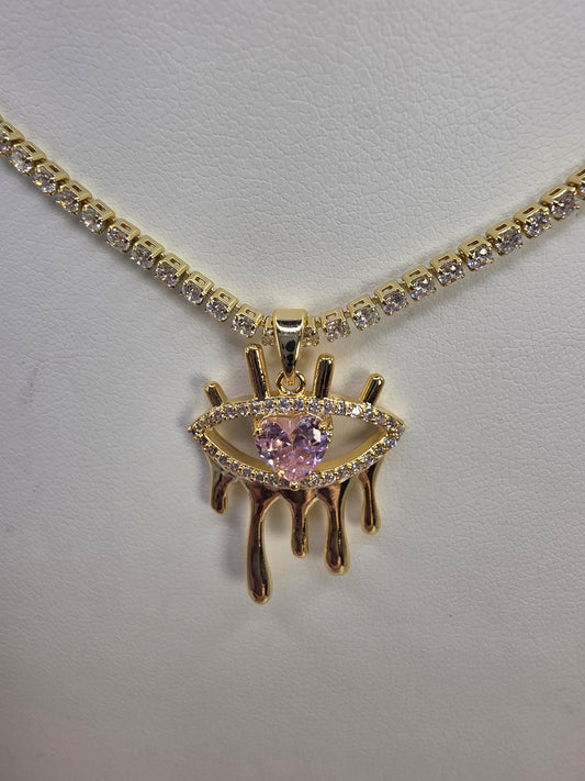 Thin glass tennis with pink eye 18inch