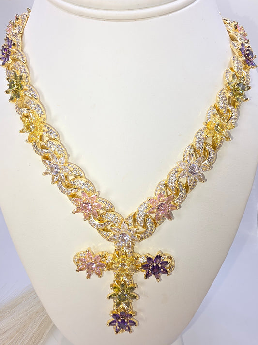 Gargantilla de Mujer 18inch Vidrio real 5A con cruz de colores ostentoso