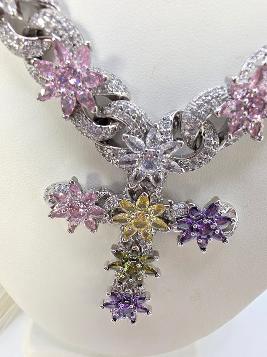 Gargantilla de Mujer 18inch Vidrio real 5A con cruz de colores ostentoso