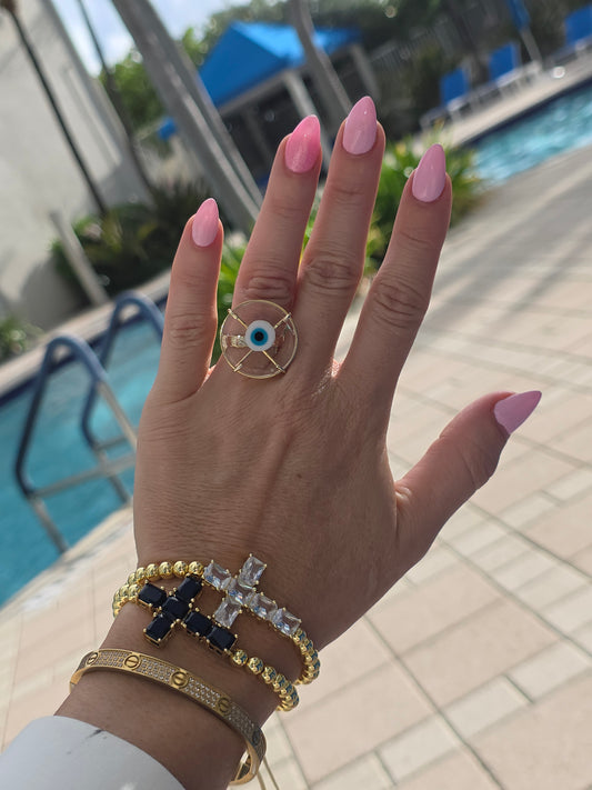 Anillo de Espina de Pezcado con Ojo Turco Size adaptable