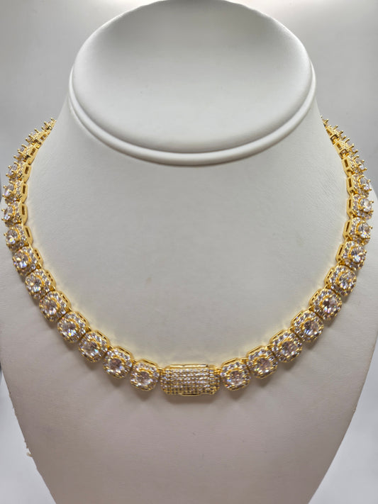 Gargantilla de Cubo de Hielo Vidrio 5A Laminado de Oro Real Alta Calidad Oro/ Silver