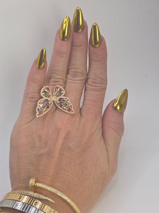 Anillo Silver ajustable de Mariposa con Vidrio