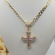 Cuba con Cruz Rosa de Vidrio Laminado de Oro 14k Alta Calidad. Cadena de 20cm