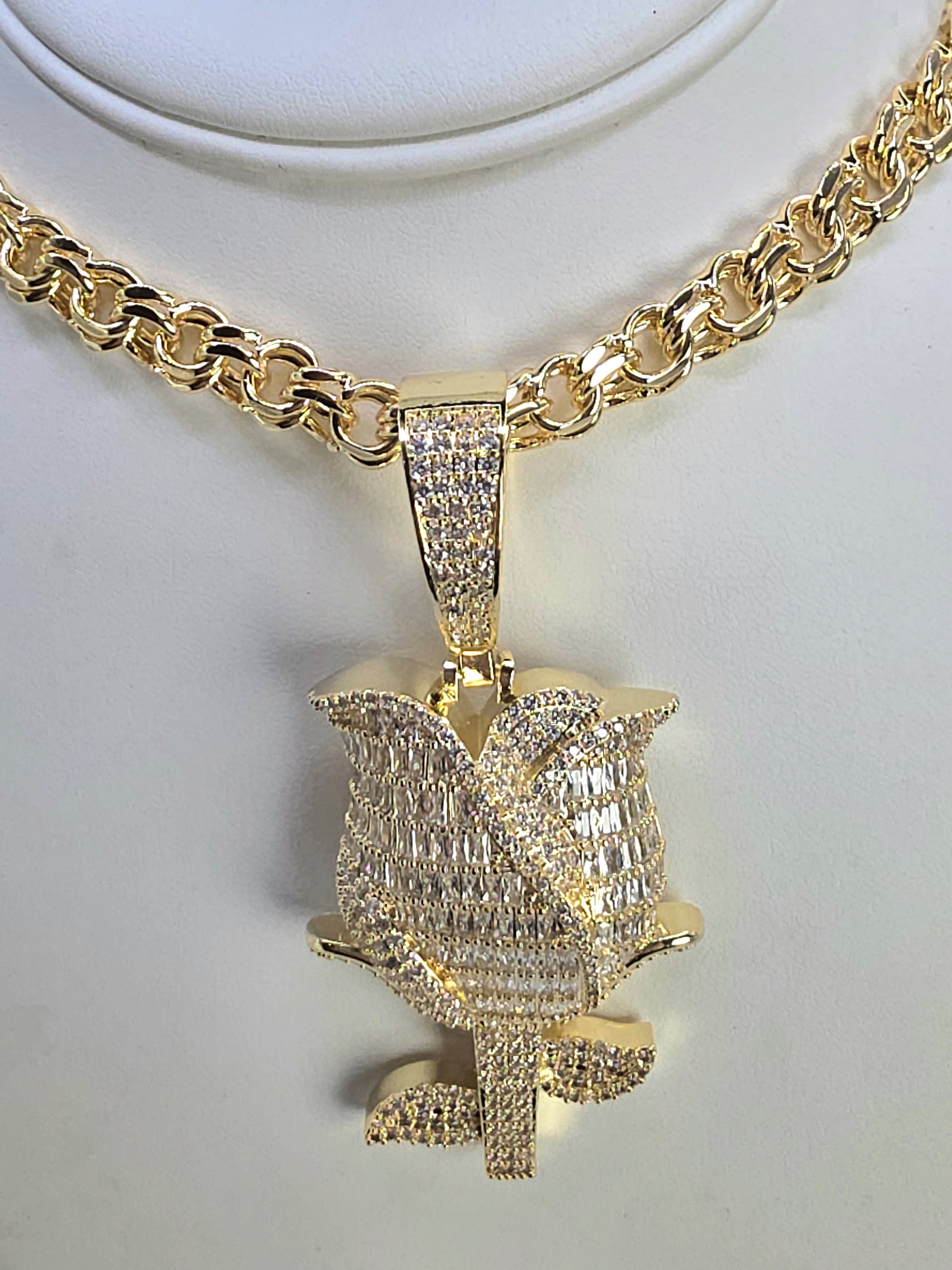 18inch Spanish woven chain with Rosa Adimantada in Vidrio Real