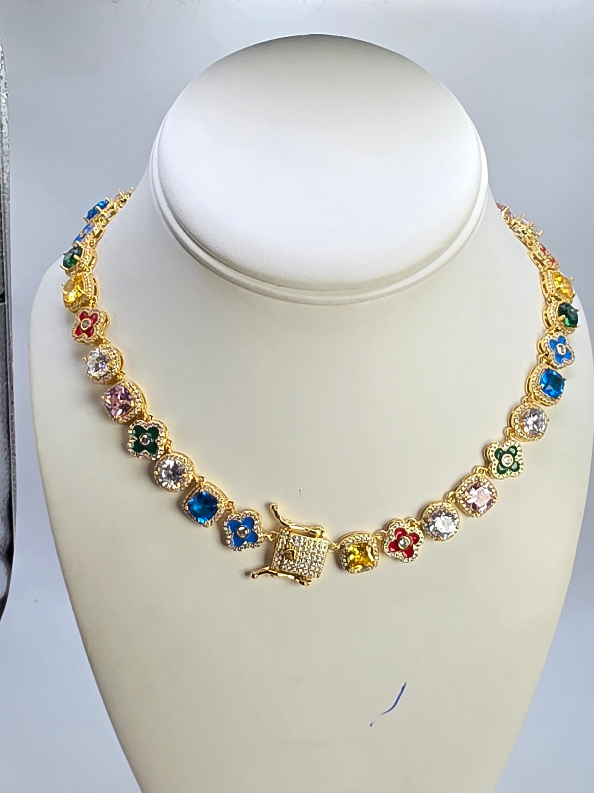 Real Glass Tennis Clover Choker