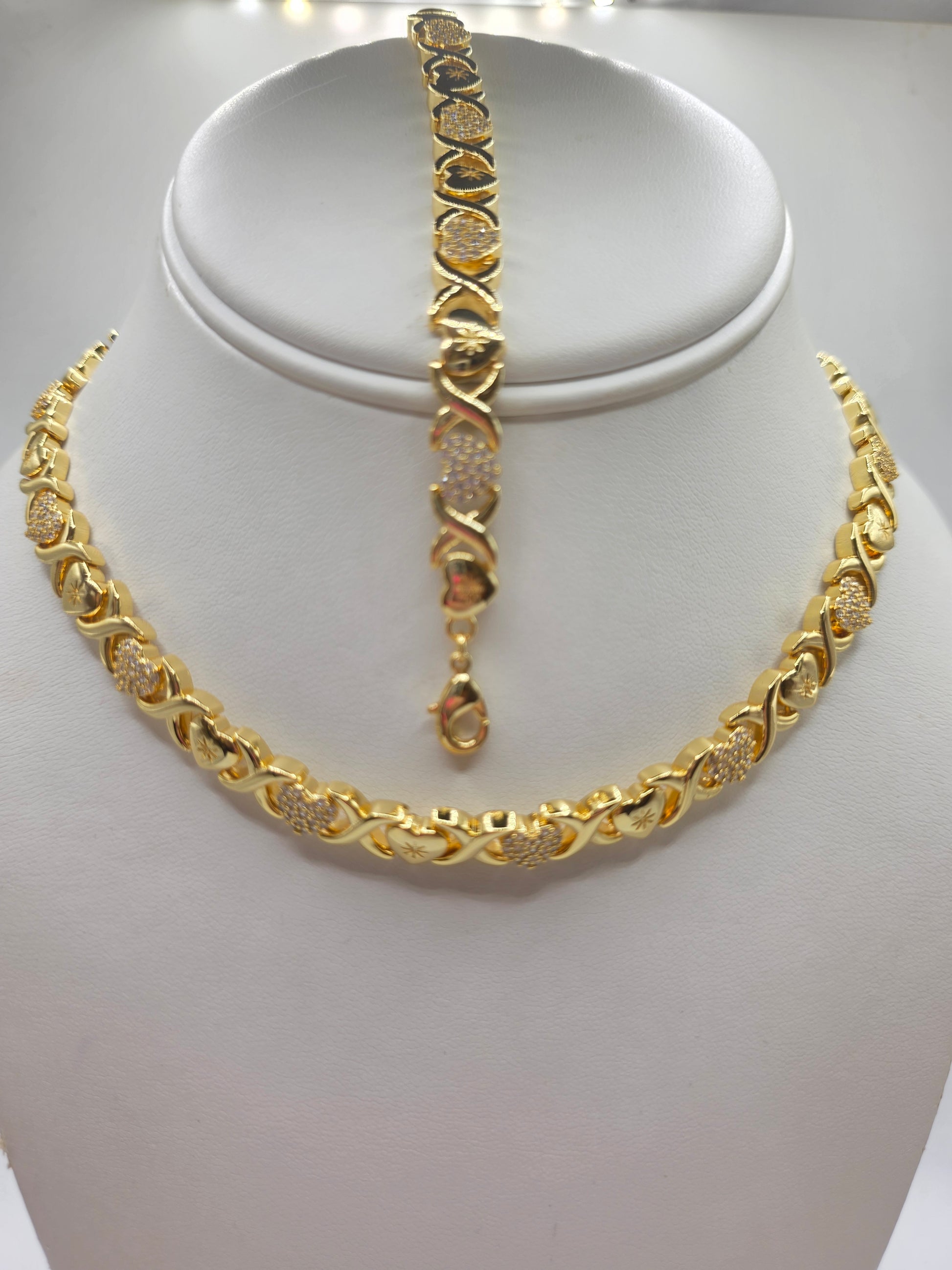 Set de Corazones Cleopatra 18inch con extensión / Laminado Oro 14k Alta Calidad