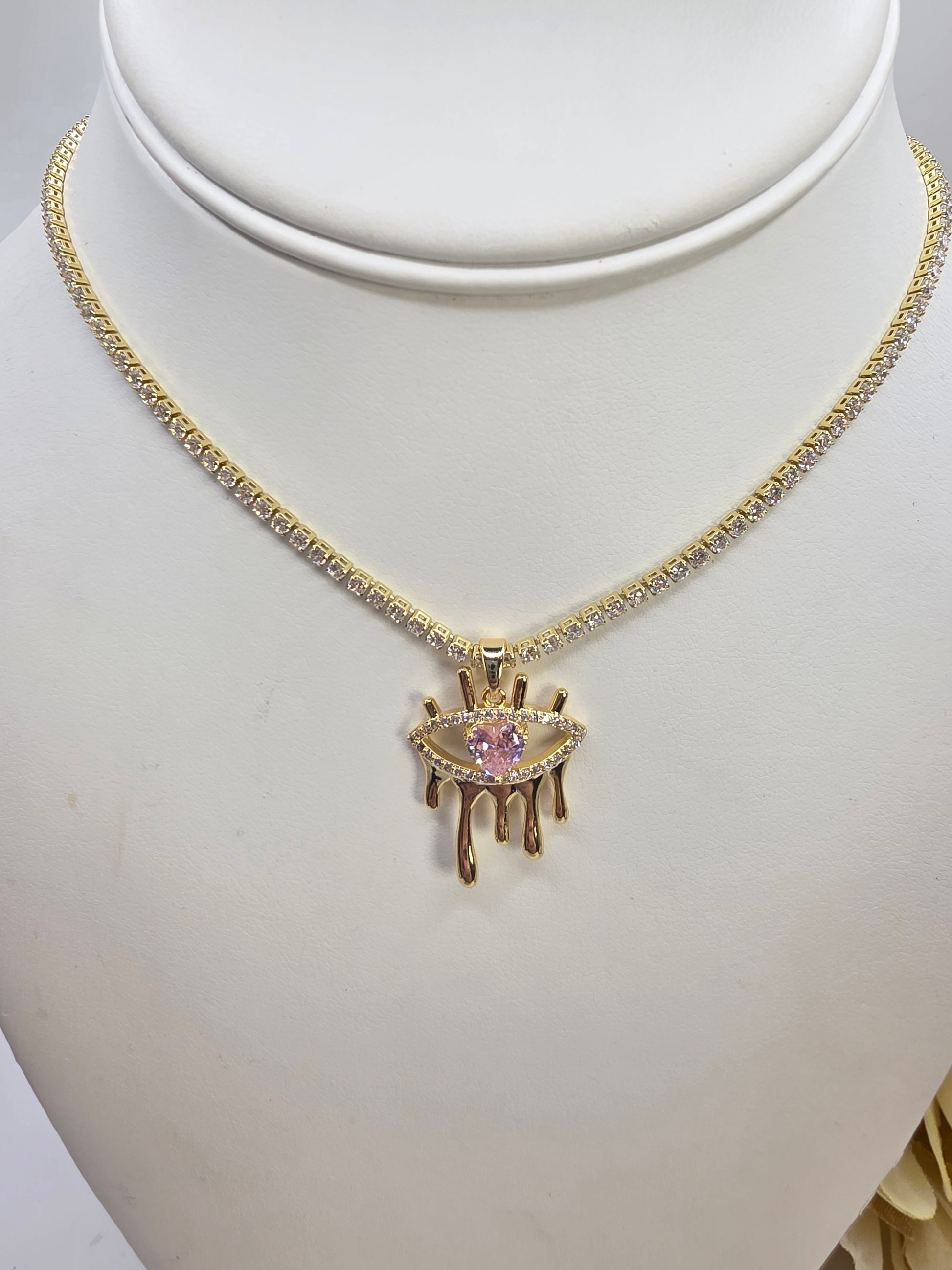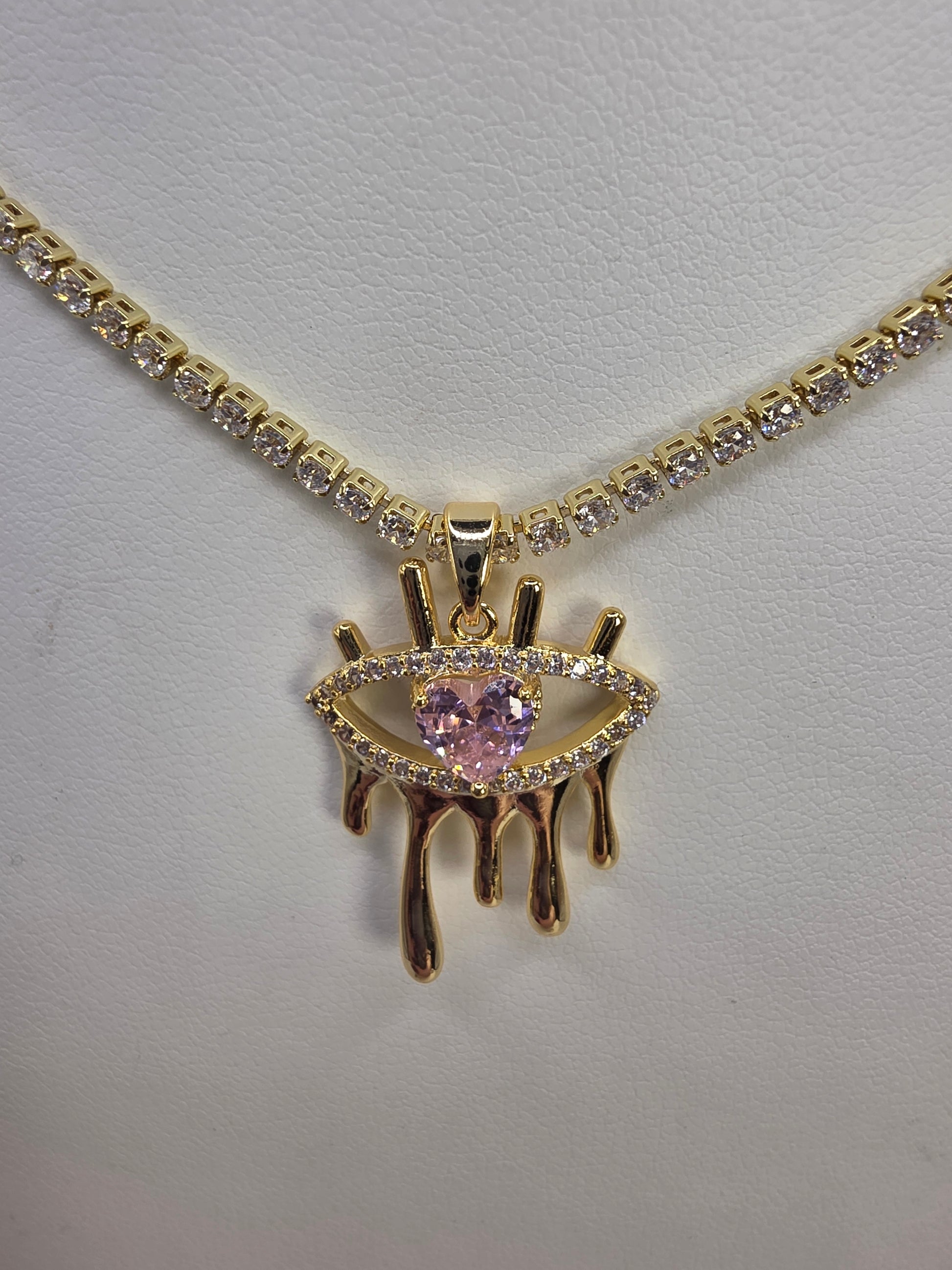 Thin glass tennis with pink eye 18inch