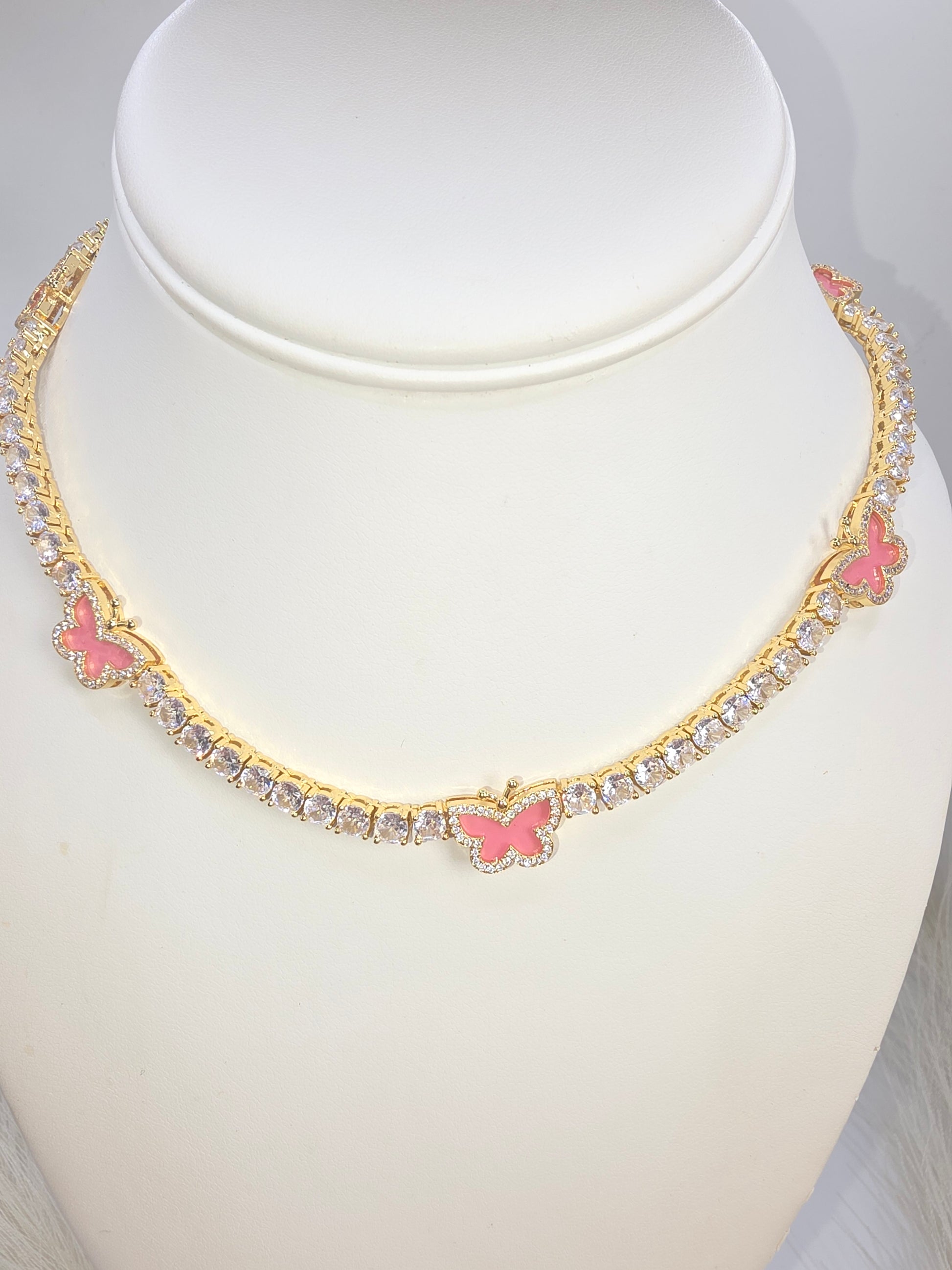 Real Glass Tennis 5A Pink Butterflies 16inch